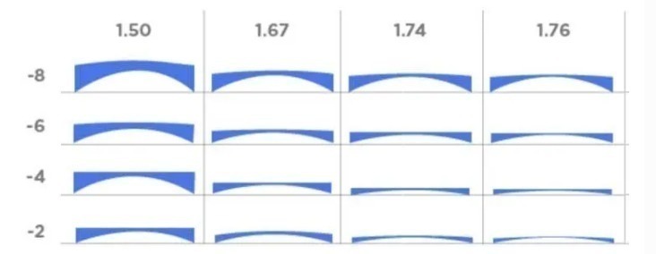 1.56 - Espessura padrão, recomendada para graus baixos, até esférico 2,00